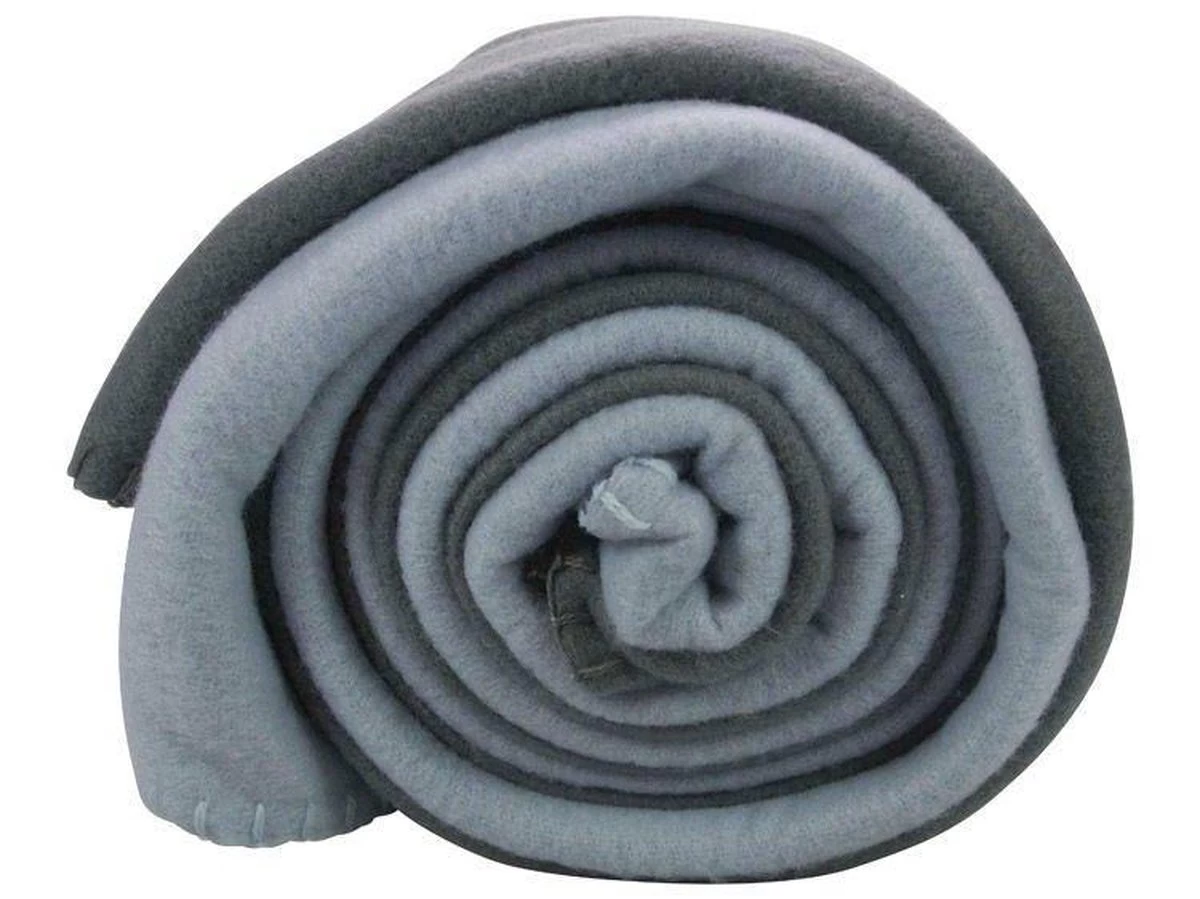 Fleecedekenset 2-delig 120x150cm grijs + blauw. Afmeting 32 x 32 x 9 cm. 100% polyester 180gsm.