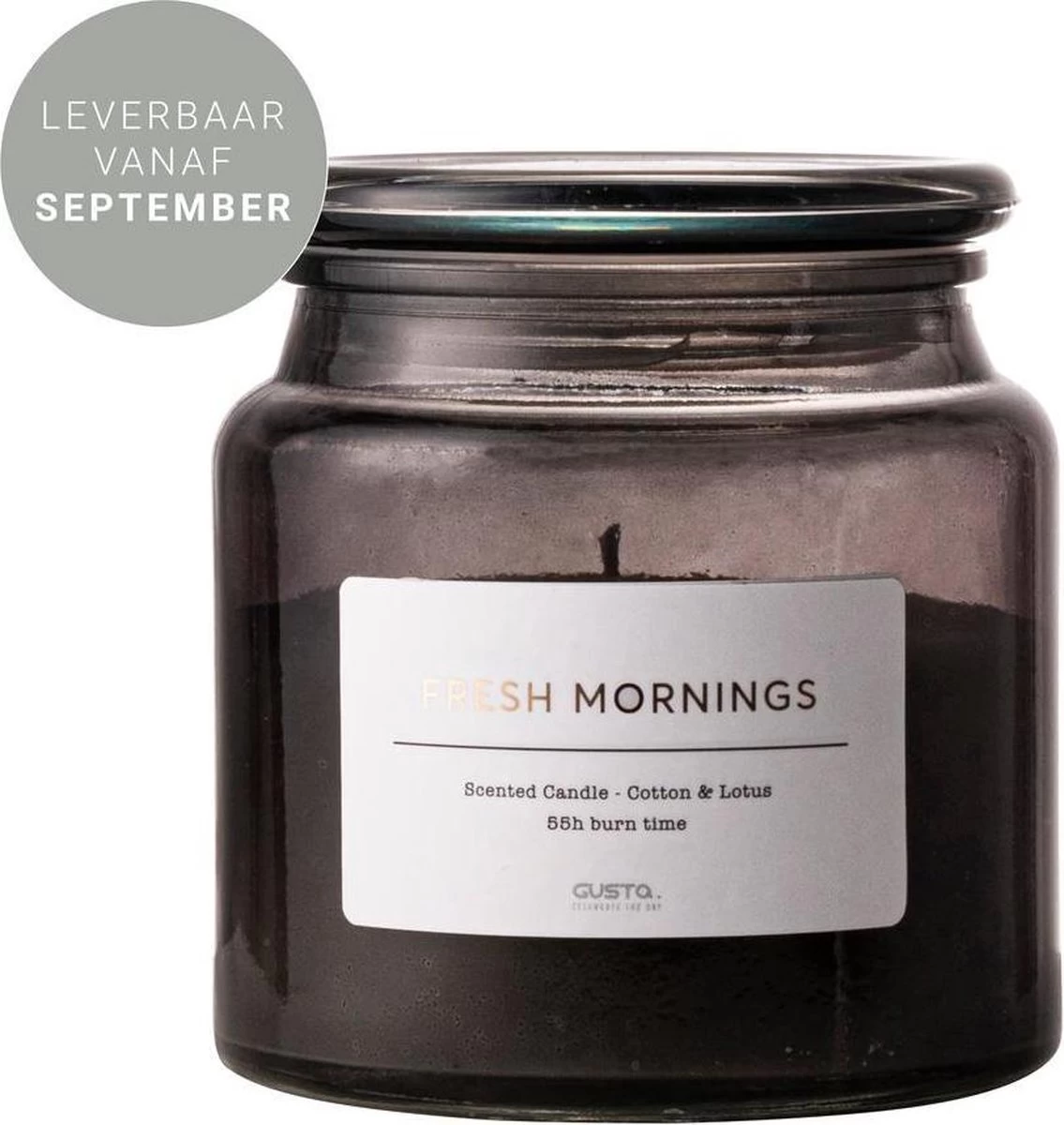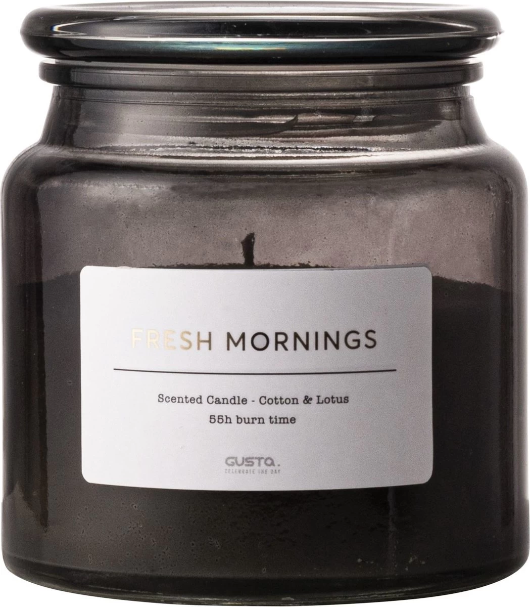Gusta – Geurkaars – Katoen & Lotus – ø10x11cm – Grijs – In Glazen Pot