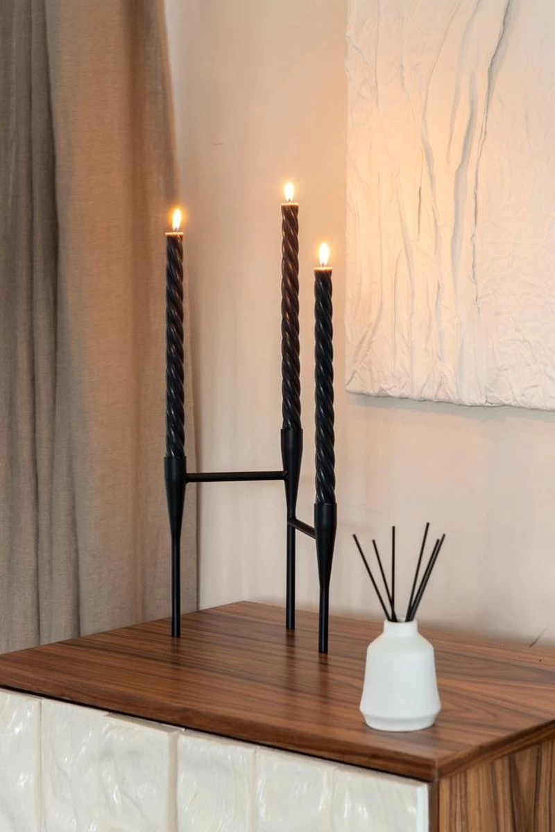 Diameter van 7,5 cm en een hoogte (inclusief stokjes) van 22 cm. Verpakt in een kartonnen koker.