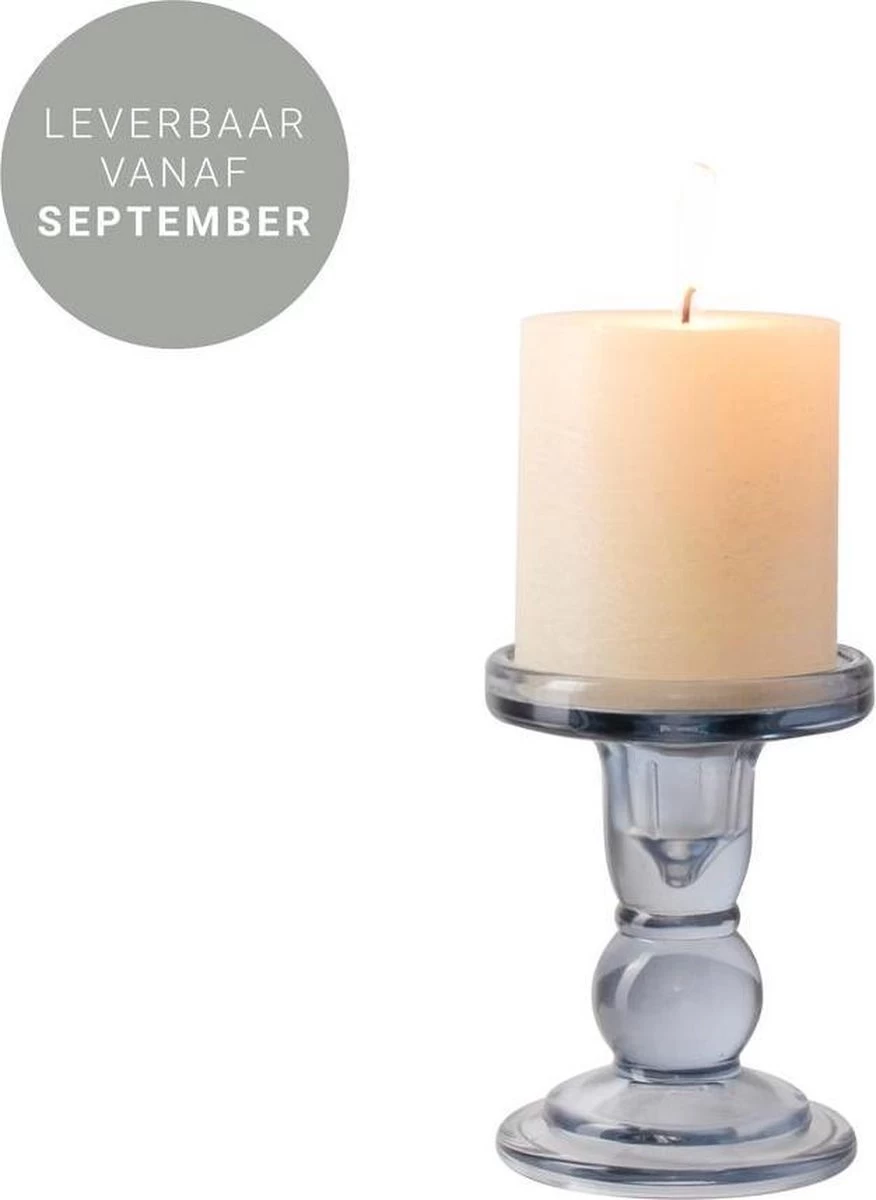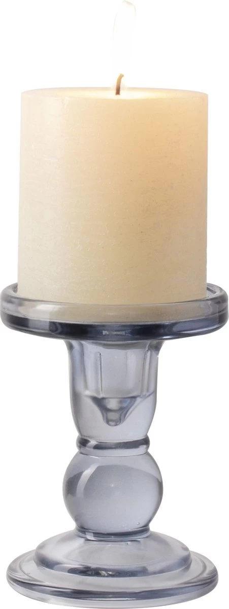 Gusta – Kaars Op Kandelaar – Blauw Wit – ø8,5cm