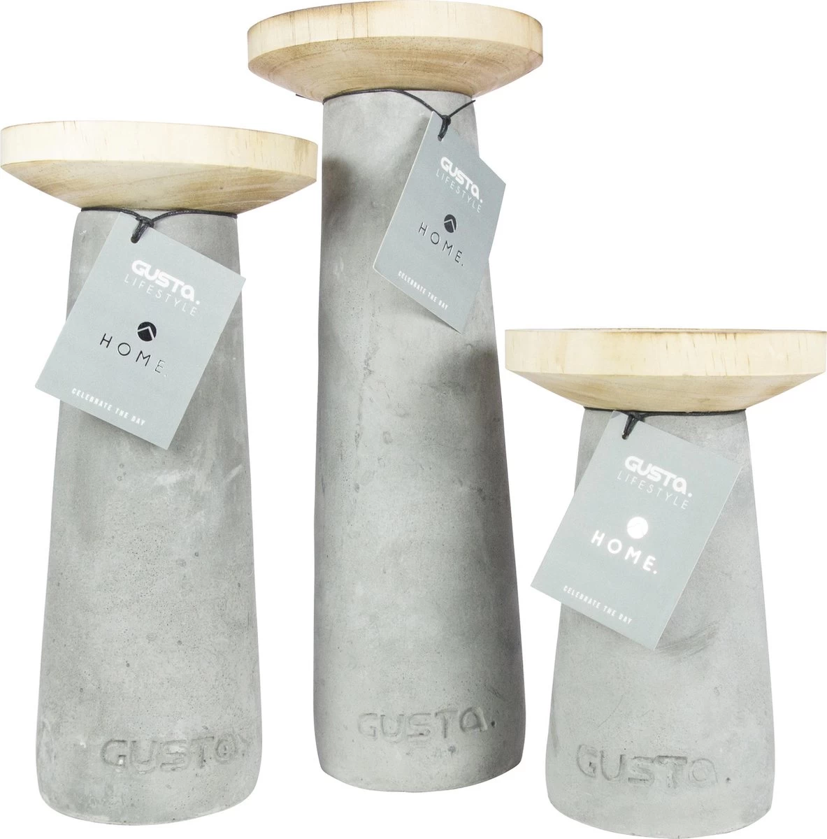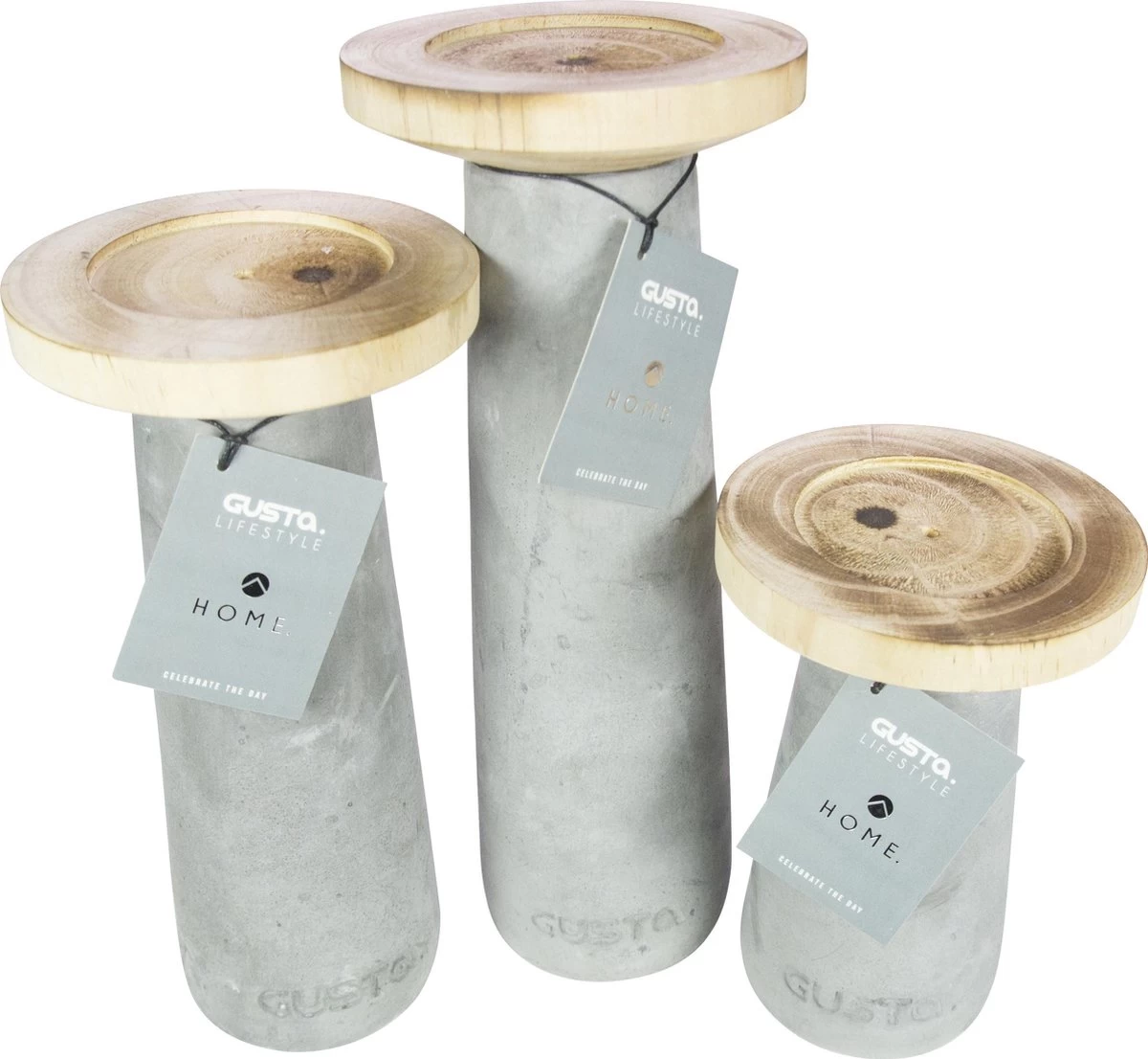 Gusta Kandelaar ø12xH25cm Cement/Hout
