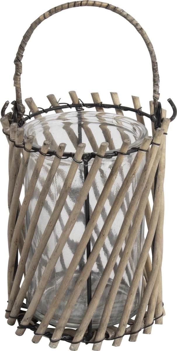 Lantaarn rotan Ø 16x16cm grijs – set 2 stuks