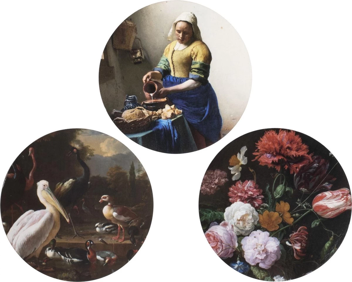 Zet je glas of mok op een écht kunstwerk! Met de onderzetters uit de Dutch Master Art collectie van GUSTA houd je de tafel vrij van ongewenste vlekken en kringen. De designs zijn geïnspireerd op de Hollandse Meesters uit de Nederlandse schilderswereld en daarom echte blikvangers op tafel. Bekijk ook de andere, bijpassende artikelen uit Dutch Master Art collectie. Specificaties: · Dutch Master Art Collectie · Print van bloemen, vogel en melkmeisje · Gelamineerd MDF met kurk aan onderzijde · 10 x 10 x 0,5 cm (LxBxH) · Uitsluitend handwas Gusta Onderzetters De Hollandse Meesters set a 6 stuks Ø10cm