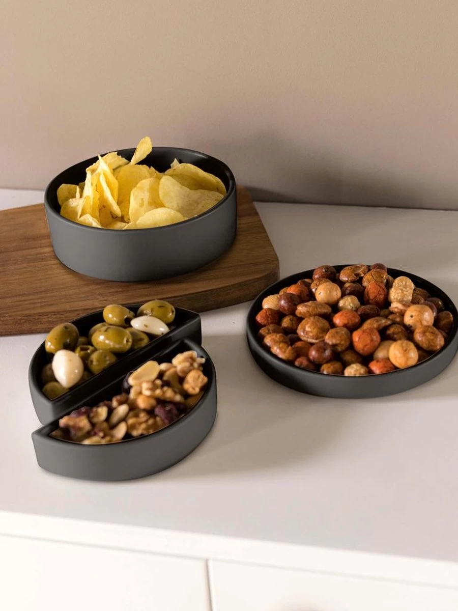 Feestje? Hiermee zet jij makkelijk wat hapjes op tafel. Na afloop stapel je deze serveerset met gemak in elkaar, dat scheelt ruimte in de kast!