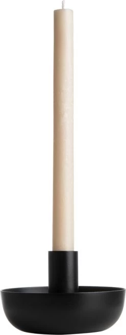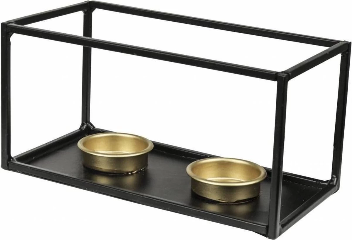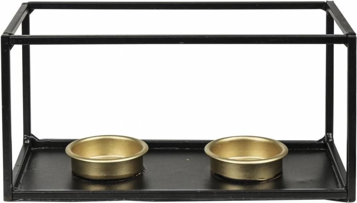 Metalen theelichthouder van Gusta. De theelichthouder is gemaakt van zwart metaal en heeft 2 uitsparingen voor theelichten.