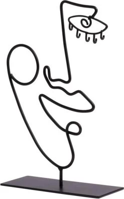 Gusta Gezicht Ornament Zwart – Woonaccessoires – Metaal – 14,9 Centimeter X 23,6 Centimeter
